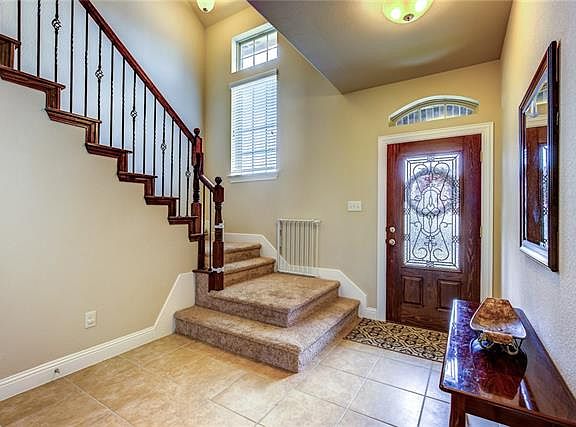 Rockwall ISD; Stunning two story home with open floorplan. This home has oversized bedrooms with plenty of room for everyone. Interior boasts tile floors, high ceilings, gas fireplace & crown molding throughout. The gourmet kitchen opens to the family-dining rooms & features a large island, granite counters, pantry, gas cooktop & built-in microwave & oven. The private master suite offers dual sinks, walk-in closet, garden tub & separate shower. A wood & wrought iron staircase brings you upstairs to the remaining bedrooms with huge walk-in closets & 2nd living-game & media room. The covered patio & large backyard are ready for entertaining. There are no homes built behind you! Don't let this one get away!
