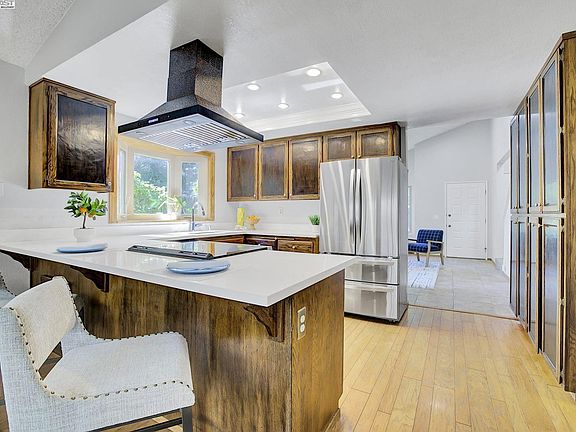 Welcome to Bayview Park Drive, a 4-bedroom 3 bath home nestled below the hills in Milpitas. Enjoy double high ceilings in the elegant living space in this freshly painted home with recessed lighting and a romantic fireplace and hardwood floors. Flowing into a open kitchen with new quartz countertops and ample storage is a great room and formal dining. Also, on the bottom floor is the primary bedroom with a view of the lush backyard with many fruit trees...The backyard is a wrap around with a surprising amount of space and lime, lemon, orange, loquat, persimmon and pomegranate fruit trees, overflowing jasmine, and blooming roses encasing you in heavenly scents. Recently replaced newer roof. Three bedrooms upstairs are all oversized with room for king beds and desks or lounging spaces with a deck overlooking the backyard. Award winning Milpitas schools including William Burnett Elementary (9/10 test score rating) and Milpitas High. Extra storage in the garage with a built-in attic storage with ladder. The home is across from the sparkling community Pool, and a playground. The community is quiet and private with walking paths and extra vehicle storage for all the RV, Boat, or kayak! Make this lovely spacious home yours today!