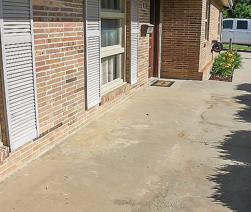 Great move in ready brick ranch style home with all amenities on 1 level. Open floor plan, bright welcoming living room, gorgeous tiled fireplace (disconnected) with sliding doors leading to the patio and backyard. Eat in dining area is open to the living room and kitchen great for interaction with friends and family and flows great back and forth between, kitchen has plenty of nice cabinets, countertop and backsplash, includes microhood, stove, refrigerator, and dishwasher, and additional access to the patio. South end of the home offers 2 bedrooms, full bath with tub/shower combo recently remolded, largest room has lots of closet space, 1 closet has built in shelves and other is a walk in with additional storage, and a private door to the back yard (this would be excellent to access a hot tub on patio). North end of the house offers the 3rd bedroom with closet, great space for guest or family, full bathroom with onyx surround. Laundry / mudroom is great additional space with built in cabinetry, bar for hanging closet and built in desk with access to the 2-car attached over-sized garage. Patio has stamped concrete that stretches across full length of the back of house, huge back yard with wood privacy fence, storage building and a storm shelter to keep your loved ones safe in the instance one is needed. Nice front porch, beautiful yard with landscaping and sprinkler system. Call today to view this wonderful home in a nice quiet neighborhood.