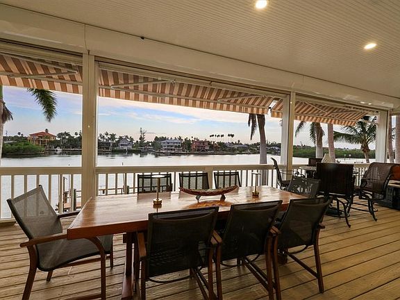 Set along the coveted waterfront of Blackburn Bay, this rare Nokomis estate embodies the very best of refined coastal living with multi-residence flexibility. The .68-acre property spans 100 waterfront feet and offers a stunning main residence and a fully appointed guest house with unique and flexible garage space. Crafted for effortless entertaining, year-round comfort, and Gulf Coast adventure, it encompasses 4,537 square feet of living space, four bedrooms, four-and-a-half baths, an attached garage, and dedicated boat, RV or hobby storage, ideally pairing casual luxury with a practical lifestyle. A welcoming approach leads to Trex steps, and a front porch framed by glass-pane French doors, opening to expansive living spaces. The great room’s illuminated tray ceiling, large windows, and engineered hardwood floors set the tone for airy sophistication. The dining area, open to the kitchen and living area, features sliders to the deck, designer lighting and a decorative high ceiling. The chef’s kitchen offers an oversized central island with seating, quartz countertops, a premier stainless-steel appliance package with a cabinet-faced Sub-Zero refrigerator, stone backsplash, and ceiling-height cabinetry with decorative glass accents. A custom bar and lounge, with prep sink, wine cooler, dual Sub-Zero beverage refrigerators, glass-faced cabinetry and a hidden door to the primary suite, adds a touch of intrigue. The primary bedroom includes a sitting area, dual walk-in closets, and plantation-shuttered windows, while its spa-inspired bath features a soaking tub, glass-block walk-in shower, dual vanities, water closet, chandelier-lit tray ceiling and transom windows. Two guest bedrooms share a full bath, and a half bath completes the main floor. The ground level, finished with wood-look tile, offers water views and flexible spaces that open to the outdoor amenities, abundant storage and a two-stop elevator. Outdoor living is elevated with a spacious terrace featuring retractable awning and hurricane screens, a shaded lower patio with freshly sealed stone columns and mature landscaping. The private dock includes two lifts, plus water, electric and lighting for seamless boating with quick access to the Gulf. The guest house is equally well-appointed, with a travertine-floored great room, kitchenette with stainless steel Frigidaire appliances, upstairs family room and bedroom, two full baths, Bosch laundry, and a garage designed for boat, RV or hobby storage. Multiple French doors and sliders connect the space to an amazing paver pool area strategically between the two homes. With its blend of refined interiors, generous indoor-outdoor spaces and direct waterfront access, 559 Bob Hope Drive is more than a home, it’s a statement of coastal living.