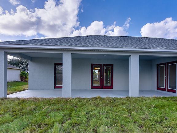 Lovely 1-year old Energy Efficient Rated with enhanced insulation throughout NE Palm Bay Home. Open floor plan, upgraded wood cabinets, granite counter tops, tiled bathrooms, SS appliances, tiled living areas with carpeted bedrooms, utility room, tray ceilings in Family Room DIning Room and Master with 2 set of french doors leading to porch. All bedrooms have walk in closets. 16SEER AC, vinyl double paned E argon gas windows. Storm shutters round out this great house. Popular Unit 6 is just minutes to major employers, dining, I95 and a short ride to area beaches.