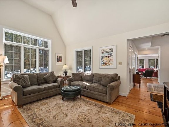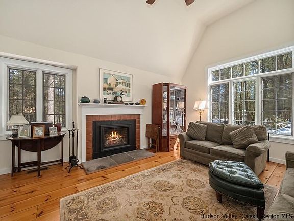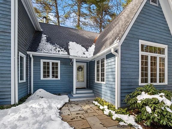 This quintessential country home, complete with private setting and premiere location, has been lovingly cared for by the original owner. With large Pella windows to bring the outside in and bathe each room in natural light, the home is warm, bright, and soothing. Wide-plank pine floors add to this comfortable aesthetic. A spacious living room opens into the dining room and a large chef’s kitchen, which features a GE Monogram 48” 6-burner gas range with a commercial hood and two ovens. Head into the family room, light a fire in the gas fireplace, and cozy up with a good book under the vaulted cathedral ceiling. Rounding out the first floor is a bedroom with a full bath, currently being used as a den. Upstairs features two bedrooms and two full bathrooms. The primary bedroom has an ensuite with an extra long and deep soaking tub for ultimate relaxation. Although the inside of the home is a retreat in itself, there’s nothing quite like getting out and enjoying the 4.83 acres this property has to offer. A charming stone garden shed was built by the owner in 2001 as an ideal spot for bikes and lawn equipment. In the spring and summer, mature landscaping abounds, with hydrangeas, spirea, rhododendron, ivy, fruit trees, and pachysandra ground cover interspersed with beautiful stonework. Since being built in 1996, the home has been given incredible love and care, with improvements being added to keep the home in great condition. In recent years, the roof has been replaced and upgraded with a snow and ice shield, new gutters with guards were installed in 2021, the exterior was painted in 2019, whole house automatic generator 2015 (under full warranty until 2025), the foundation was resurfaced in 2020, and a gas fireplace was installed in 2018. Other details of the home include a central AC, paved driveway, electric pet fence, bluestone walkway, deer fence, alarm system, and covered bbq area.
