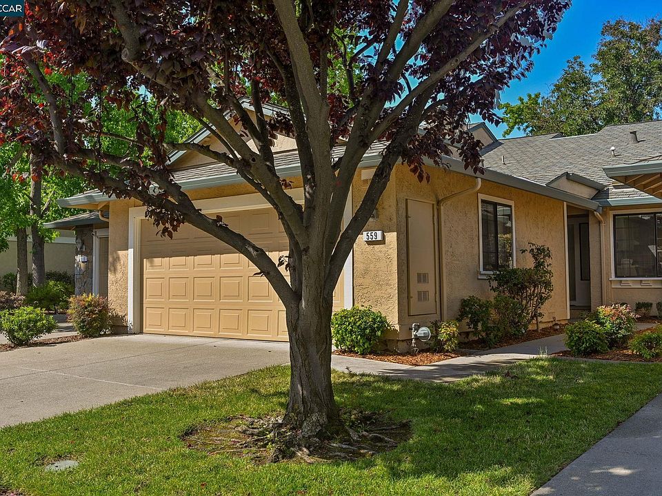 Popular 3 bdrm, 2 bath single level Franciscan townhome in desirable Bancroft Village. Home interior has been recently painted, ceilings have been textured and has elegant wide baseboards. Spacious kitchen with raised breakfast bar and dinette area overlooking private front courtyard with sparkling white kitchen cabinets. Central gas log fireplace separates living room from dining room which overlooks large back yard and cozy interior atrium. Large primary bedroom has vaulted ceiling and sliding glass door to back yard, en-suite bathroom with dual sinks, roomy step in shower and walk-in closet with built in organizer. Front guest room overlooks front yard and has large closet. Second guest room has large closet and wall of cabinets and shelves, perfect for home office. Bancroft Village boasts two pools, two tennis courts, community clubhouse, lots of green space and access to Heather Farms Park. Countrywood Shopping Center, John Muir Hospital, BART, trails and freeways close by. Top rated schools include Northgate High School.