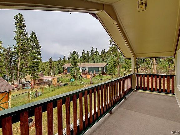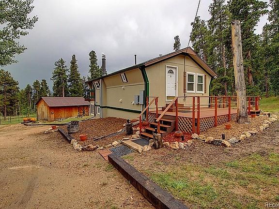 Cozy Mountain Home nestled just outside of Golden Gate Canyon State Park in the Arapahoe National Forest offering 2 bedrooms, 1 3/4 bath. Drive up to the property via the large circular driveway with plenty of parking. Enter the home using the large front deck into the semi-formal dining room, 3/4 bath, and large great room/kitchen with wood burning stove insert. On the lower level is the large master bedroom with pellet stove, an additional bedroom, and a full bath wired and piped for Steam Shower with an attached laundry/utility room! The property includes a horse barn with tack room and corral, small garden shed and a Workshop/Storage Shed that is insulated, heated and has electricity and also has an attached wood shed. Call today to schedule your private showing of this lovely mountain home today!