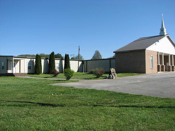 Major Price Reduction!! Brick/Steel Commercial building originally built for and currently used as a rural church. This structure can remain a church or can be converted into a variety of commercial or light industrial uses. Ideal for a large daycare facility or distribution facility. Located near both the 914 Bypass and the new Hwy 1247 to Burnside. Exterior walls are brick, steel frame, and metal siding. Roof is corrugated metal. All floors are poured concrete, currently covered with commercial low pile carpet. Nice men's and women's tile bathrooms, with 3 stalls and 2 hand sinks in each. In addition to the main structure, a separate wing includes a conference room, an office, a nursery, and a large community room with a full kitchen and full bath. The building and a large paved parking lot all sit on a 2 acre tract. * Pole building to the right of the church is not part of the listing.
