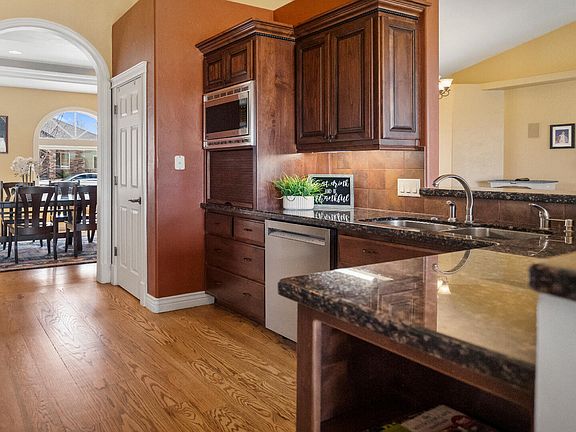 Discover your dream home nestled in the enchanting Cobble Creek Golf Course Community. The welcoming covered entrance ushers you into asophisticated living space, highlighted by a custom tile centerpiece framed by rich Missouri red oak floors and a plush carpet inset. Gazethrough the expansive window in the living room to the patio, where the Uncompahgre Plateau unfolds across the lush golf course landscape.The gourmet kitchen is equipped with granite counters, dual ovens, a brand-new cooktop, and an illuminated walk-in pantry, complemented by aspacious breakfast area. Host memorable dinners in the elegant separate dining room, showcasing floor-to-ceiling alder wood cabinets and abuffet ideal for gatherings. Retreat to the grand master suite, featuring dual walk-in closets, a luxurious en-suite bath, and an adjoining sittingroom with a cozy wet bar and fireplace. The main level also boasts a versatile office/den, potentially a fourth bedroom, a powder room, a fullbath, and a generous laundry room with ample storage leading to a vast 3-car garage. Upstairs, find a sizeable family room suited for games ormedia, an additional bedroom, and a full bath with a convenient washer/dryer setup. The balcony promises awe-inspiring views. This home isbrimming with bespoke features like a Beam Central Vacuum system and an integrated ironing board in the laundry. Positioned with privacy inmind along the #12 fairway, separated by a serene creek, it offers magnificent western vistas perfect for enjoying sunsets on the secluded,covered patio equipped with a natural gas connection for your grill or fire pit. Don't miss the chance to make this exquisite property your newbeginning. Schedule your private tour today and step into a remarkable living experience.
