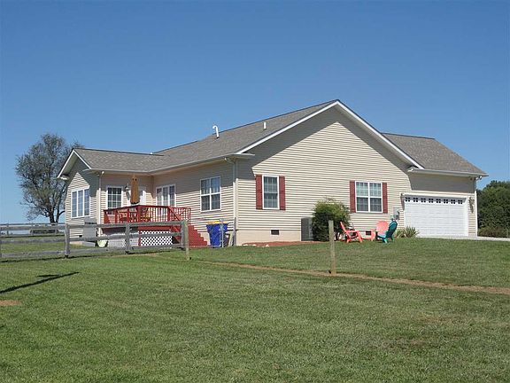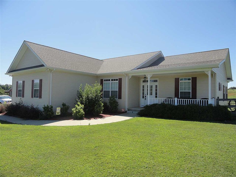 Bring your horses! This nearly new 3 BR/2 BA home sits on 4+ acres, is fenced & cross fenced and has small barn with stalls, tack room & lean to. Immaculate home has ceramic tile throughout, open floor plan, fireplace, sunroom, deck, split bedroom plan, formal dining room, fenced backyard & sits off the road for privacy. Own your own mini farm today!