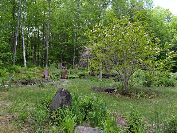 Peaceful Adirondack Home with 3 bedrooms and 3 full bathrooms situated on 3.23 acres with stunning perennial gardens with pond. Open floor plan, Gorgeous stone wood burning fireplace, private setting, Hot tub, Automatic back up generator