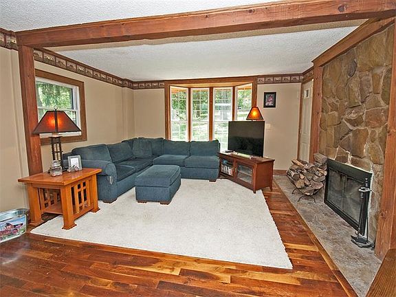 Enjoy the privacy! Rustic charm just 20 minutes from Cranberry Township. Cozy up to the wood burning fireplace in the family room with Cherry hardwood floors. Open floor plan. Recently update kitchen with a large island. Two full stylish baths. New roof in 2016, new carpet in 2016, furnace and a/c in 2013. Three stall garage and 1 acre of property.