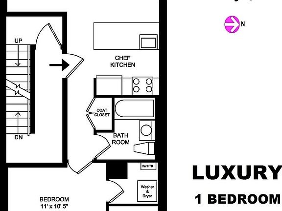 Luxury 1 Bedroom with Chef's Kitchen, and Washer and Dryer