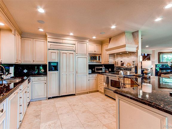This beautifully landscaped, one-owner, passive solar custom home offers mountain views, mature trees providing exceptional privacy, vaulted ceilings, an open floor plan, and floor-to-ceiling windows that bring the outdoors in. The spacious main level includes a chef’s kitchen with maple cabinetry, paneled refrigerator, granite countertops, and tumbled limestone flooring, plus a cozy living area with a gas fireplace and flexible spaces for work or play. The expansive primary suite is a true retreat with its own fireplace, skylit sitting room, private deck, steam shower, marble floors with radiant heating, and a large walk-in closet. Set on a beautifully landscaped lot with a variety of mature trees and split-rail fencing, the property includes a gazebo with a built-in gas grill, a deck with hot tub hook-ups, and a putting green. Storage and functionality abound with an oversized 4-car tandem garage with built-in cabinets, plus an additional garage ideal for a workshop or equipment storage. Bonus spaces include on the main level that can be used for a gym or craft room, a temperature-controlled enclosed patio, and a large office with mountain views, skylights, and heated travertine flooring. With a whole-house water filtration system, water softening system, and efficient heating/cooling throughout, this home offers flexibility, privacy, and thoughtful upgrades at every turn - including European rolling shutters, natural stone flooring, and a jacuzzi tub!