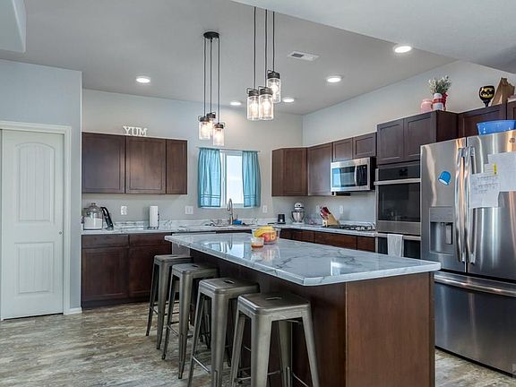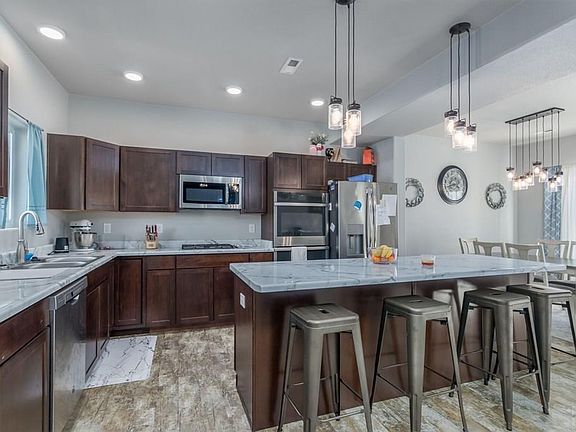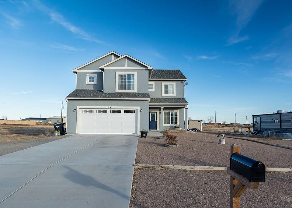 GREAT NEWS! PRICE REDUCED! The sellers are willing to include the 2020 5th wheel with the sale of the property, for only 15k extra! It is already hooked up with power, sewer and water! This 2-story home in Pueblo West has a bright and open floor plan with a half bath off the entry, a large dining room, and a chef's dream kitchen with upgraded cabinets, gas cook top range, double ovens, and tons of counter space. The living room has a cozy gas log fireplace and a glass slider leading to the rear patio and a large backyard with an RV plug-in and sewer drain. The non-conforming room on the main level can be used as an office, game room, play room, or converted into a 5th bedroom. The upper level has a large primary bedroom with a walk-in closet and attached bath, a laundry room, 3 additional bedrooms, and a full bathroom. The home also has top-of-the-line appliances, a tankless water heater, high-end LVP flooring, and a 2-car attached garage on 1.24 acres of land.