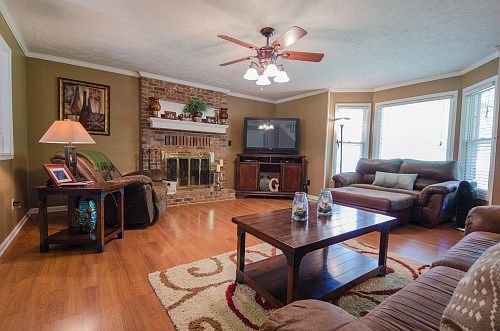 Well maintained brick home with 1947 sq feet, 3 bedrooms, 2 baths and a spacious rec room. Over size bedrooms, new hardwood and carpet as well as updated bathrooms. Cozy kitchen with all kitchen appliances staying and a large eat in kitchen leading to the walk in laundry room. Plenty of storage in the walk in attic or in the workshop located within the 2 car garage. 1.56 acre lot with mature trees, fenced in yard, open patio and plenty of room to play in the front or back yard. Home will qualify for 100% financing.