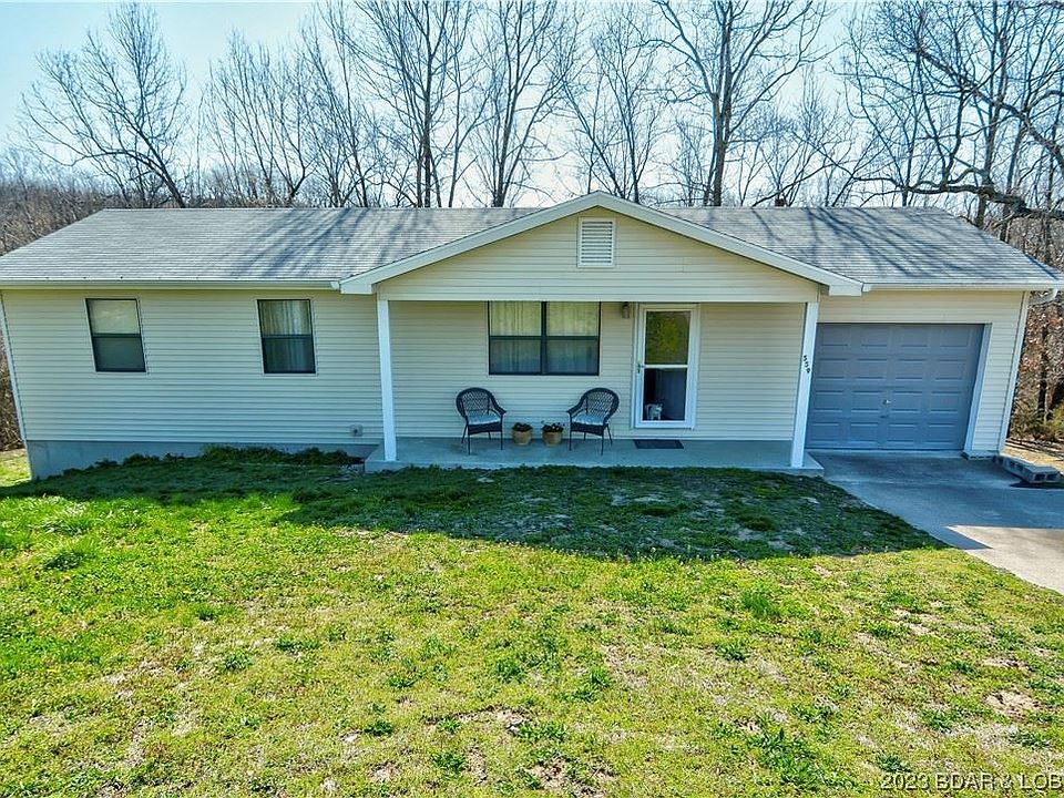 Home on 1+ acres of land in Seven Trails West Subdivision. June of 2022 a new roof & guttering was installed, new kitchen appliances were updated, 3/4" beautiful light spice hardwood flooring were added to the Kitchen, Living room and down the Hallway of the main level. New carpet installed in June in all of the bedrooms as well. New flooring was added to the main bath and the master bathroom. IT'S ALL DONE! Now you have a FULL WALK-OUT basement to do as you please as it is unfinished and currently being used for storage and the laundry area. Easy access just .03 miles to Hwy 5 toward Lebanon and/or Sunrise Beach, and short drive into the Camdenton Square you just can't beat this location! High School near by as well.