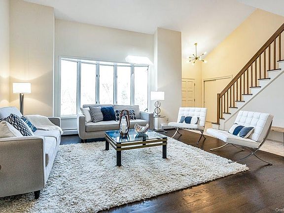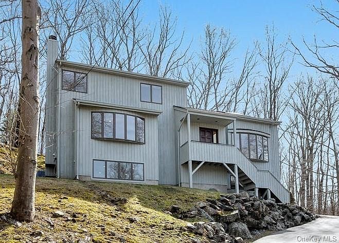 Bright, airy, light-filled 4-Bedroom Contemporary home on 1.23 acres. Sited on the rear of the property to ensure privacy with beautiful hillside views. Features modern open design with newly refinished hardwood floors throughout, living room with cathedral ceiling and skylight, formal dining room, and eat-in kitchen with stainless steel appliances. The kitchen opens to the family room w/fireplace. On the main floor, there is a separate bedroom/office. The kitchen and dining room have sliding glass doors to an oversized deck. On the second floor, the luxurious primary suite has a fireplace and sitting area, two closets (1 walk-in), and a primary bath with jetted tub plus 2 additional bedrooms and a full bathroom. In addition, the above-ground finished lower level is the perfect extension of the living space with large windows, natural light ideal for recreation, exercise, and home office. Roof, Central Air, Boiler, and Hot Water Heater replaced (2018). Driveway repaved and sealed in 2020.