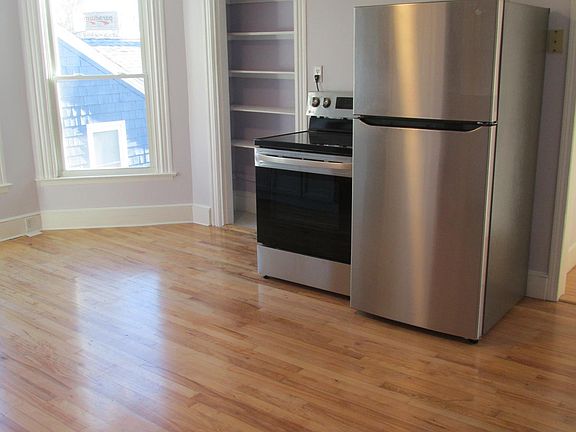 Recently renovated large, sunny 2 bedroom. Spacious apartment on two floors. Large kitchen, dining room, living room and bath on first floor. Efficient Rinaii heater using K1 fuel. 2nd floor, (accessible by spiral staircase), has two bedrooms, bath, office space, washer, dryer. Baseboard electric upstairs. Hardwood, bamboo, tile floors throughout. New, energy efficient windows. Off street paved parking for two. Near UNE, USM, MMC. No pets, no smoking. Available April 10th (or sooner). First month and security required. Owner pays for public water, plows. Tenant pays utilities, fuel (K1), electric. Lease is one year, month to month after.