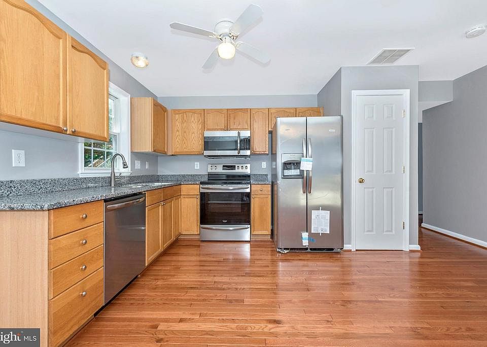 Great end unit TH w/ open layout. Bright large kitchen with large area for dining with new granite counter and SS appl. Enjoy the finished family room on the lower level with full bath. Large warm living room w/ an angle bay window. Master BR includes full bath & walk in closet. You will love this one. Freshly painted, new carpet and hrdwd floor. Close to I-270 and I-70.