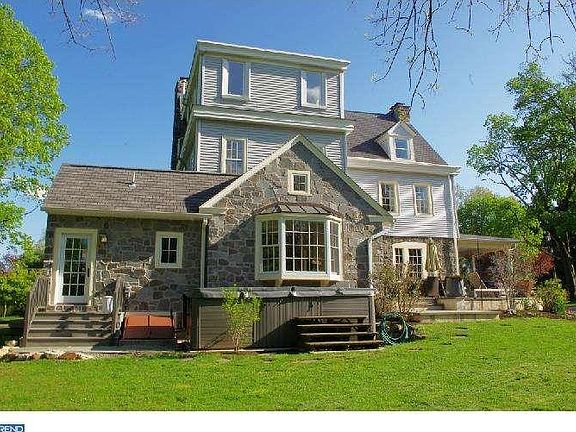 RED FOX House sits majestically at the apex of the merger of Kennedy and is easily walkable to the Strafford station for the R-5 line into Philadelphia. Magnificent leaded glass transom and side lights at the front entrance invite the morning sun to play upon the oak floors of the grand center hall which flows from the slate patio of the front porch past the flanking formal living and dining rooms to the french doors opening onto the wrap around slate patio connecting the Kitchen, living room and back gardens into a multicircular entertainment flow. This home has been remodeled to suite the 21st century while retaining all the charm of the last turn of the century. From the great stone fireplaces in the dining room and Living room to the window seat at the landing topping the stair to the second floor this home speaks to tradition and solidarity of time honored construction and tradition bringing lite and life into the home.