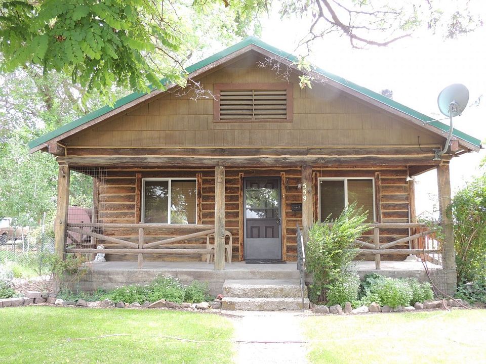 Genuine Log Home with all of the country charm! Beautifully landscaped with flower gardens and chain link fence. Home features two bedrooms, 1 bathroom, living room, laundry room, kitchen with pantry, and office. There is a one car garage out back with storage/workshop. Quaint front porch for sitting and watching the world go by! Don't miss out on this opportunity to have your very own Log Home!