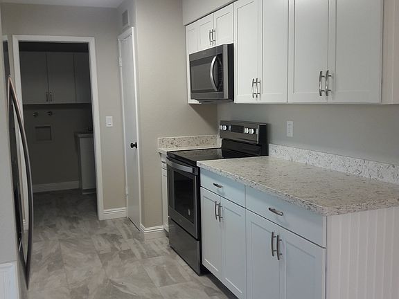 This beautiful home in the highly sought after Sunland village subdivision is the one you have been waiting for ready to move in because everything has been done totally updated and upgraded new architectural shingle roof new vinyl low e windows ,complete new stucco finish and fresh paint ,6' block wall for privacy in the garden like backyard retreat ,interior features include fresh paint in soft gray and white tones popcorn ceiling has been removed as well all new porcelain tile & carpet new kitchen & laundry room cabinets ,quartz tops throughout ,new sinks,faucets,lighting & fans tile surrounds added to showers/tub all new stainless steel appliances new window blinds new plugs & switches(decora style) GFCI s added in wet areas Sunland offers many amenities & a very affordable HOA fee Note that the large tree seen in the pictures has been removed