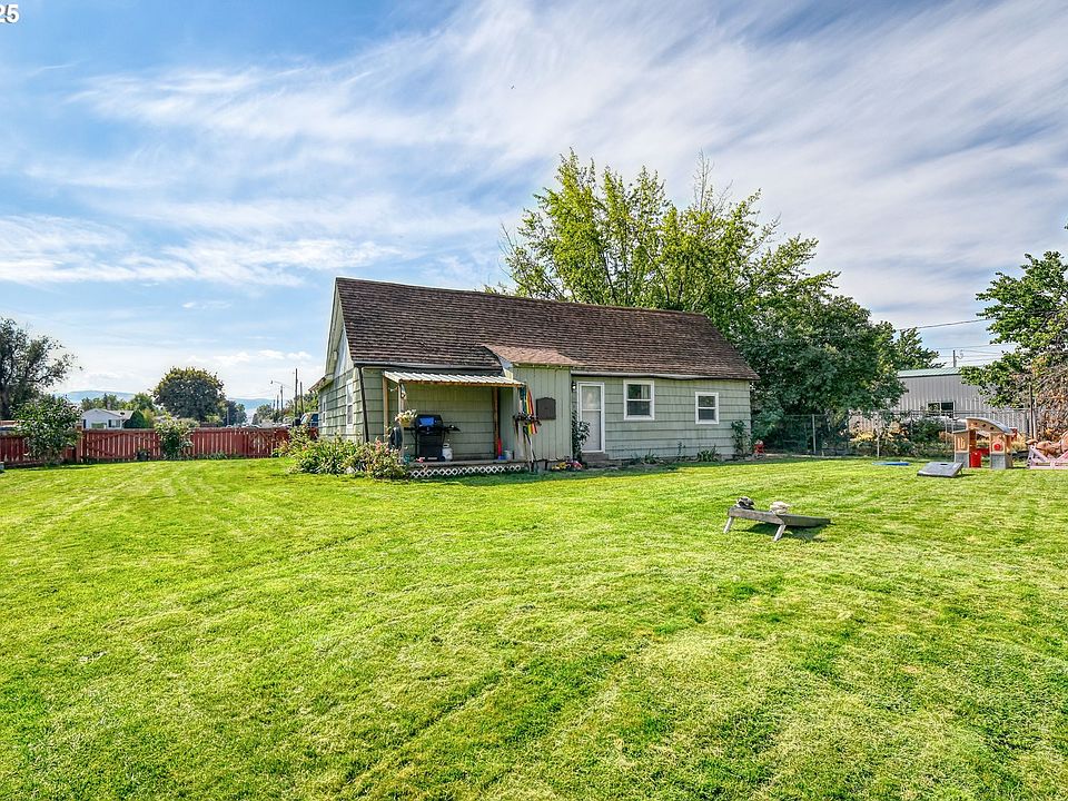 Welcome to this 1,184 sq. ft. 2-bedroom, 1-bathroom home set on a spacious lot spanning over a third of an acre—an uncommon find right inside the Pilot Rock city limits. Outside, you’ll discover four versatile outbuildings offering endless possibilities: a shop with workbench, man cave, storage space, or even an oversized chicken coop—they’ve all been done here. There’s also ample parking for your toys, trailers, or extra vehicles. Step inside and kick your shoes off in the mudroom before heading into the recently updated laundry area. Enjoy lots of recent cosmetic updates throughout the home, from the laundry room overhaul to tasteful flooring and fresh paint. Beyond cosmetics, you’ll also appreciate the energy-efficient vinyl-framed windows and a furnace that was replaced in 2019. The well-laid-out kitchen welcomes you with its central island, making it a perfect gathering spot for hosting or everyday living. Both bedrooms are generously sized. The current primary features double closets, while the second bedroom has all the makings of a future en-suite—whether you envision tapping into existing water lines to create a bathroom, or transforming it into a spacious walk-in closet. Opportunities like this—large lots paired with comfortable living space and thoughtful updates—don’t come around often in town. Schedule your showing today before it’s gone!