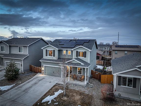 Welcome to this beautifully designed four bedroom, three bath home, located in the up-and-coming town of Lochbuie! Upon entering, you will notice the lovely vinyl flooring, spacious foyer, office space and a half bathroom. Continue through the main floor and you will be pleasantly surprised with the spacious living room and the pristine upgraded kitchen showcasing quartz countertops, a newly installed tile backsplash, and a uniquely designed custom wood center island. With this impressive open floor concept, this home is ideal for hosting many gatherings. This home comes with an approximate six-foot crawl space located beneath the home and easily accessible on the main floor. On the second floor, you will find the primary suite, along with an en-suite shower/tub combo and dual sinks bathroom with a massive walk-in closet, that won’t disappoint! The remaining three bedrooms, flex space, full bathroom and the laundry room are also conveniently located on the top floor. Head outside to the large back yard and enjoy the relaxing summer nights on the upgraded composite wood deck! This home is also equipped with owner owned Solar Panels, so you will appreciate lower energy bills, year-round! Easy access to I-76, with shopping, grocery, and restaurants close by!
