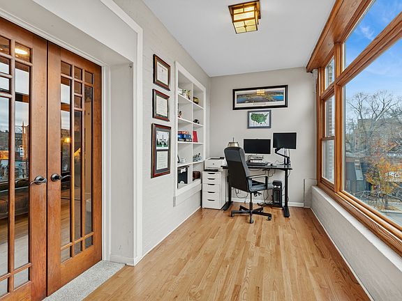 Welcome to 559 W Aldine, Unit 2, an exceptional Lakeview residence where timeless elegance meets refined modern living. Perfectly situated within the highly sought-after Nettlehorst Elementary District, this beautifully updated condo blends vintage character with thoughtful contemporary enhancements. Sunlight pours through the impressive 31-foot sunroom and office, framed by energy-rated Andersen windows that brighten the home from morning to evening. This inviting space flows naturally into a warm living room centered around an electric fireplace, creating a cozy retreat in the heart of the city. The adjoining room-originally a formal dining space-has been reimagined as a private theatre room, offering an elevated in-home entertainment experience ideal for movie nights, gaming, or hosting friends. The remodeled 19-foot eat-in kitchen provides an abundance of room to cook and gather, featuring granite countertops, stainless-steel appliances, and classic white cabinetry. Both bathrooms were remodeled approximately six years ago and feature clean, timeless finishes. The en-suite includes a granite vanity, full tub, and separate shower with porcelain and ceramic tile details. The second bath offers a marble vanity, custom shelving, crisp white subway tile, and sleek porcelain flooring-creating a polished, cohesive look throughout the home. Throughout the residence, refinished hardwood floors, new carpeting, fresh paint, and exquisite custom millwork-including 51/2-inch baseboards, corner cornices, crown molding, and solid wood doors with original hardware-highlight the craftsmanship and charm that make this home truly special. Additional updates include a fuse-box expansion with added breakers, updated lighting, a new AC window unit installed in 2024, a new laundry door frame, and custom extra-tall French doors in the bedroom. Andersen windows were installed approximately six years ago as well, offering long-term value and improved energy efficiency.