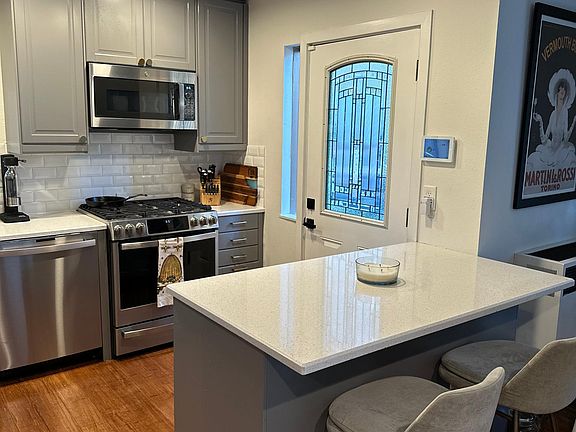 Updated Detached 2 story home with Bay Views. Featuring a newly updated kitchen with stainless steel appliances and quartz countertops, with bamboo flooring and an open family kitchen combo with Bay Views and a comfy fireplace. Head upstairs and enjoy even larger Bay Views from the Master Bedroom with a private balcony. Large second bedroom perfect for young kids, with custom closets throughout. This one-of-a-kind home also offers a relaxing backyard (which will come with furniture and grill upon request) with a wrap-around deck. The oversized 2 car garage provides additional space and extra storage not often seen in the Point. This property is truly not to be missed. Close to local neighborhood beaches and miller Knox park, and only a short walk away from historic downtown Point Richmond shops and restaurants! Available 4/1/24 Owner pays for trash and pest control maintenance. Tenant will pay for PG&E and water. Minimum 12 month lease. No smoking, pets allowed with additional deposit.