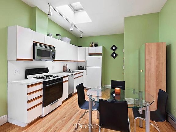 This modern loft-style one-bedroom is a spacious and sun-filled home set on a serene tree-lined block in the heart of brownstone Brooklyn. All of the borough's prime attractions are within walking distance of your front door, while your own private finished roof deck is an enviable space for outdoor entertaining. Oversized windows and three skylights fill the entire apartment with natural sunlight, complementing the 12-foot ceilings and lovely hardwood floors that run throughout. The large living room features a wood-burning fireplace, while the eat-in open kitchen has ample storage and a brand new dishwasher. The sunny bedroom includes a large closet, with an additional closet in the hall. Both closets have extra storage above. A striking spiral staircase leads up to the huge private roof deck for easy access. There is also a washer/dryer within the unit. This pet-friendly building offers an unbeatable location is on a quiet block, but steps from all the restaurants and boutique shopping of Park Slope, Smith Street, and Boerum Hill. With the 2/3/4/5/B/D/N/Q/R trains all just around the corner at Atlantic Avenue/Barclays Center, anywhere in Brooklyn or Manhattan is a short subway ride away.