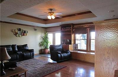 - Interior: Built In Book Shelves, Walk In Closet, Window Wood, Wood Work Stained, Ceiling Tray, Window Bay Bow