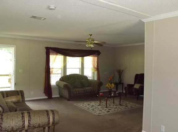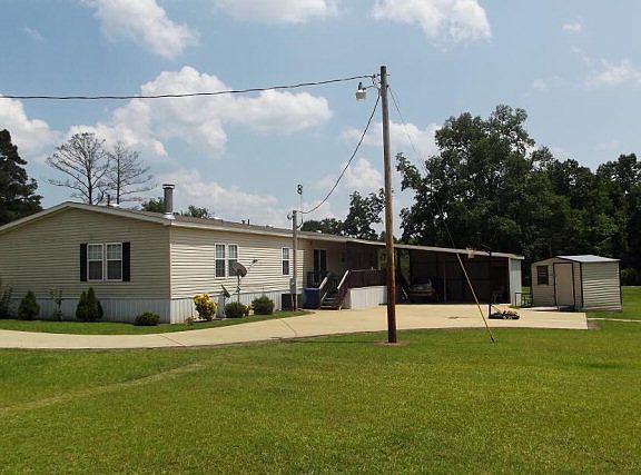 Immaculately maintained mobile home. Secured to Florida standards. 5 bedrooms! Cute, Covered front porch, back patio. Attached large size 2-carport. Concrete drive. Storage buildings. Island kitchen. Fireplace. Rain gutters. Lovely landscaping. Approx 4 acres.