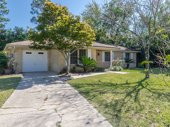 Great location near Scenic Heights Elementary School, YMCA, Parks, Shopping Malls, Airport, Restaurants & local Hospitals. 3 bedrooms, 2 full bath, brick home on corner lot. Tile foyer with newly refinished hardwood floors in formal living, dining, in hallway and the 3 bedrooms. Tile floors in kitchen, breakfast room & family room. Fully equipped kitchen w/pass through window over sink to family room. Tile counter tops & breakfast bar as well as roomy breakfast area. Family room has brick hearth wood burning fireplace & built in bookcases. French door exits to covered patio & fenced backyard. Roof replaced after Hurricane Ivan. 1 yr home warranty for buyer.