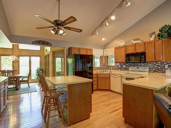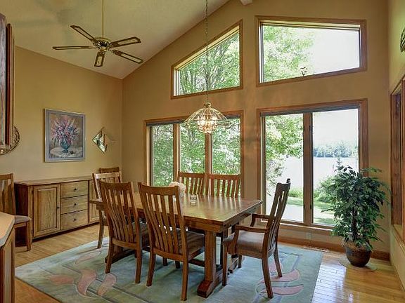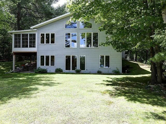 Turnkey lakefront living is what you will find in this well-maintained 2 bedroom, 2.5 bath home on Lake Julia. The main level features a bright & cheery living room w/ vaulted ceiling & bay window, a spacious kitchen w/ hardwood flooring & island seating, a formal dining room, a lake-facing sunroom & adjoining 3-season enclosed porch, and the master suite w/ full bath & generous walk-in closet. The lower level offers a family room w/ double-sided gas fireplace, a hot tub room w/ bar area & walkout to the backyard patio space, an office overlooking the lake, the second bedroom w/ attached full bath, a utility room, a half bath, and a dedicated laundry room. The exterior enjoys a paved drive, a 2-car attached garage w/ finished workshop space, attractive landscaping, and a very gradual approach to the waterfront in a private and quiet setting at the end of Lake End Road. Located just minutes from Rhinelander on full-rec Lake Julia, this home is worth your consideration!