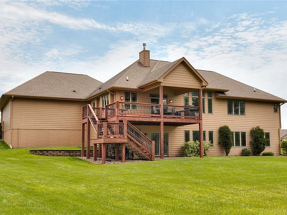 Calling all commuters this beautiful custom walk-out ranch on .681 acres in charming Woodside Estates West is perfect! Over 3,600 sqft of finished living area includes 4 BR & 4 BA. 11’ ceilings in the family room, kitchen Quartz countertops, stainless appliances, walk-in pantry, hardwood floors. High efficiency wood burning stove, and sliding glass doors to spacious covered deck off the kitchen. Master suite has accent lighting in tray ceiling, double vanity sinks, tub, toilet room, walk-in shower, linen closet, walk-in closet w/ adjustable shelving, and in-floor heat. The whole home features Alder trim & doors, rounded corners, lumen lighting controls, zone in-floor heat & zone GEO temp controls. The walk-out lower level is perfect for entertaining, sprawls over 1395sqft of finished living area, w/ a built-in media center & surround sound, functional kitchenette complete with dishwasher, microwave, & sink. NO shortage of storage space here with built in shelving and storm room. Heated garage covers 1250 sqft, extra deep 3rd stall, built-in storage, 8’ garage doors, and hot & cold-water hookups. No covenants here! Commuters have quick access to Interstate 80/35, and local conveniences of Ankeny/metro area. So many features and upgrades!