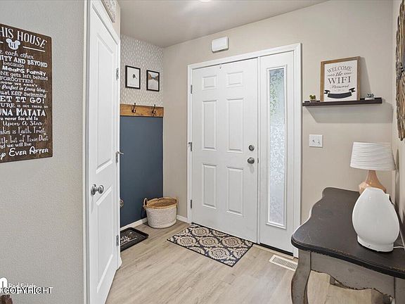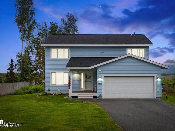 Amazing unobstructed mountain views! This home has lots of charm. Ample room with 2 living areas, one living area has a cozy gas f/p. There is a dedicated breakfast bar area and a formal dining. All bdrms and laundry are upstairs. Fully fenced yard and the yard extends beyond the fence line. Enjoy nice landscaping all around. Many moose visitors. Just 1 HR commute to JBER/ANCH. NO HOA!