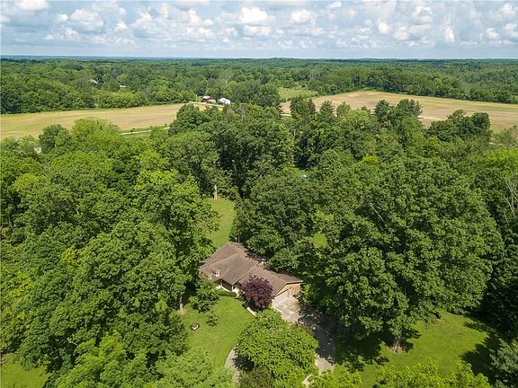 All brick mulit level home on a gorgeous treed lot! Private setting. See aerial photos. Property includes two parcels to toal 3.02 acres. Parcel # A01-029000 and Parcel# A01-028900. Semi taxes stated include both. Custom built home by Donald Dick and an addition providing a rec room or additional family room. 2336 total sq. ft. and a 630 sq. ft. garage with workshop. Two bedrooms at upper level have a non studded wall in between to enable enlargement for a large master. Home has radiant heat in the ceilings as well as an electric heat pump system. Updated 200 amp electric. Bath at upper level updated. Lower level has new wood loock ceramic flooring. Breakfast room and kitchen have wood flooring. Built in cabinetry in large living room. Roof replaced in 2004. Nice, large outbuilding (18x22) that could be an extra garage, but is currently a workshop. Circular, concrete driveway and covered front porch. Home comes with a First American home warranty. Immediate occupancy.