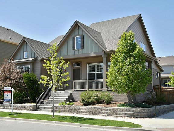 This Stunning, Former David Weekley Model Home Has Custom Upgrades Throughout. This Main Floor Master Sits on a Corner Lot With A Front Wrap Around Porch. Upon Entering, The Flowing Hardwood Floors And 10' Ceilings Will Catch Your Eye. With 4 Bedrooms, 4 Baths and A Finished Basement There Is Plenty of Room. The Open Concept Kitchen and Family Room are Perfect for Entertaining, Along With The Formal Dining Room and Study. The Gourmet Kitchen Boasts Quartz Countertops, Electrolux Stainless Appliances, And Dove Tail Soft Close Drawers & Cabinets. The Master Has Vaulted Ceilings With Wood Inlays, A Walk in Shower, and Large Walk-In Closet. A Convenient Main Floor Laundry Room Completes The Main Level. The Finished Basement Has a Game Room, Bonus Room, a Guest Bedroom Suite and Full Bath. The Upper Level Has a Loft With Built-in Cabinets, 2 Bedrooms And Bath. Enjoy Time Outside on The Back Covered Patio. With over 130K in Upgrades, This Home is a Must See! Easy Commute to Denver & Boulder.