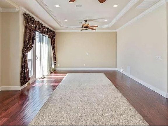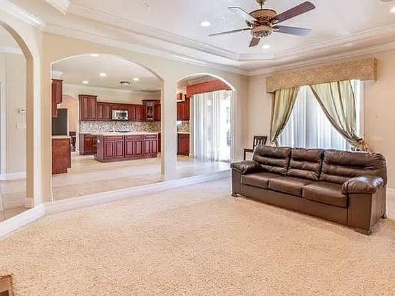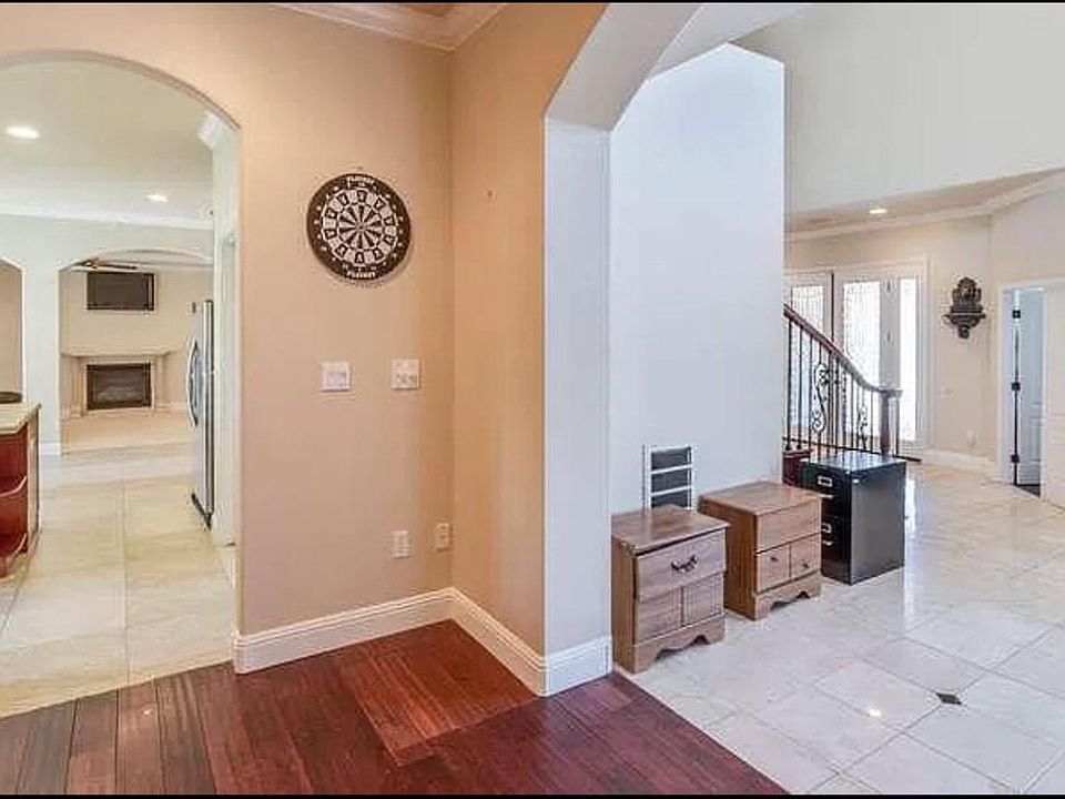 Rare opportunity to rent this one-of-a-kind Home that was custom-built in 2008. Approach the front gate w/ 3-car garage & curved driveway that can accommodate add'l cars. Grandeur & majesty greet you w/ lions perched atop exterior columns exuding courage & strength. Take in the luxury of 35 ft. tall vaulted ceilings, curved staircase & marble floors w/ inlaid design. House upstairs: 4BD/3BA. Two of the bedrooms have private en-suite bathrooms. HUGE primary suite, jacuzzi tub w/ dual-sided fireplace, steam shower w/ multiple shower heads! Ground-floor Den/Office is possible 5th BDRM. Chef's kitchen w/ 2 sinks & large island! Separate family room! 15,889 sqft corner lot w/ side yard.