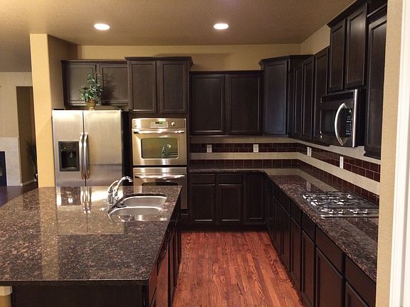 Three bedrooms, three bathrooms, and generous two car attached garage with additional storage. Gourmet kitchen with gas cooktop and double ovens, designer cabinets granite countertops. Hardwood floors in kitchen, dining, great room and hall ways. Dining nook connects to outdoor covered patio for extra dining/seating. Spacious master suite & bath plus second bed & bath on the main level. Finished basement features large rec room, wet bar, and game area. One additional bed & bath in the basement. Home was built by Covington Homes and is a combination of quality construction, well planned space and comfort adding features. Fireplace in great room, air conditioning, generous closets and storage areas throughout the home. Covered porch and fenced side yard, landscaping and sprinkler system installed. This home is part of established Parkwood at Wolf Ranch neighborhood; very quiet, close to shopping, D20 schools, parks, and many other amenities. Affordable low maintenance living. All appliances included. This home is a must see - great value and location!