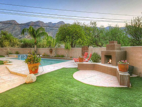 * A rare home where you walk in and know.... that this is truly a home. Not ostentatious, not cold, amd certainly not ordinary. The foyer leads the eye to french doors, a magnificent outdoor living space, and perfect mountain views. Every room flows effortlessly to the other and a two sided fireplace simply enhances that segue of space. The kitchen is most certainly the heart of this house. Custom warm wood cabinetry, two islands, and room for everyone to gather. I can't imagine not loving this kitchen. The master suite is just as inviting complete with fireplace, french doors, and beautiful spa bath. I love the inside, but the outside is everything that Tucson living should be. Huge pool, fireplace complete with bancos and patio, huge covered porch, and drop dead mountain views. Take
