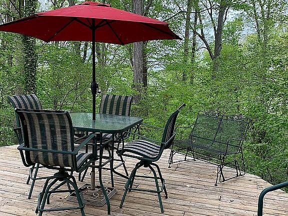 Custom Two-Story River Cabin set on a quiet lot with great river and field views. Decks have been pressure washed and newly stained. Very large deck and screened-in porch. Front upper deck to enjoy sunrises and an additional 2nd floor deck in the back for sunsets. Fenced side yard for pets. New roof in 2021. Will sell furnished. Great weekend getaway or place to have a local presence in the area. No water access from lot but a boat ramp close by.