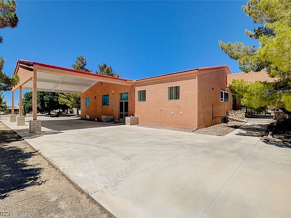 OVER 7000SQFT of living area WITH 3600 sq ft garage on 6 plus beautiful acres with mature trees, orchard and vineyard, located in the heart of Pahrump.This unique property is constructed with steel frame and block walls resulting in incredible insulation. Main level has vaulted 20ft ceilings with 33X36 great room with fireplace. Kitchen features 3 cooktops, gas and electric, double ovens, island, butler pantry with sink a prep area and wet bar with wine cooler, long bar and workstation. 5 bedrooms and 4 baths. Primary bedroom is 15x21 with full bath. Downstairs 170x23 Great room with 2 bedrm. Covered patio & rooftop deck for large parties. 2 RV hookups in garage and 4 others on property. 2 wells. GARAGE is 60x60 HAS 4 ROLL UP DOORS. Perfect to store lg equipment motorhomes. Unlimited potential for winery, private venues and meetings plus spacious living. Entire property is fenced and on drip irrigation. Sale includes adjoining beautiful 3.74 ac. fenced with commercial well