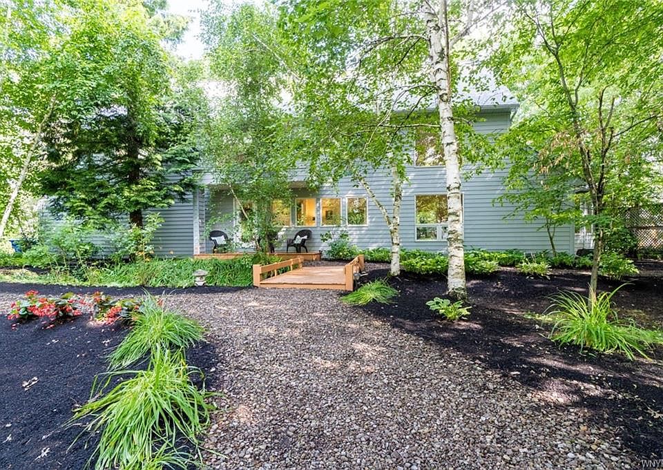 Don't miss your chance to own this one of a kind house located on a secluded private lot in Clarence. A beautifully landscaped park-like yard welcomes you to this custom designed modern home by Max Willig. Large windows make every level of this home airy while bringing the outdoors in! A bright white kitchen with stainless appliances and Thermador range is the heart of the home. A large dining area with 2 sided fireplace creates a space perfect for entertaining. Hardwood floors run throughout the first level w new carpets on 2nd floor. 3rd floor offers a remarkable reading or office space with spectacular views. The basement has a 2nd full kitchen with in-law suite potential. Other updates include roof (2019), skylights (2019), furnaces (2016), and A/C (2016). A private patio and 3 car garage complete this spectacular, unique, and stunning property. Showings begin on 7/17/21 at 12 pm. Offers, if any are due on 7/23/21 at 10 am. 2021-07-30