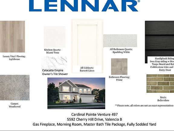 This Valencia, at just over 3100 square feet has five bedrooms, three and a half bathrooms and a study. It is the largest floorplan available in Cardinal Pointe. In addition to Lennar's Everything's Included package, this home has a partial pond view, an optional Morning Room, Fireplace and upgraded Owner's Bath tile package. It is the perfect fit for a large or growing family as well as someone that just wants more room. As well as being an amazing value inside, it is also near the planned pool and playground amenity center. Pair all of this with the included Social Membership to the Golf Club of Indiana and this home because an easy pick. Come see it at Cardinal Pointe today and move in by the end of the year.