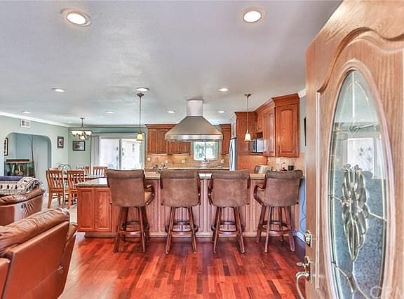 See Virtual Tour VT link above. This lovely beach home features an open concept floor plan with a completely remodeled and expanded kitchen which opens to the living room and dining area + 5 nice sized bedrooms, including a master bedroom. The home also offers many upgrades, including; granite counters, stainless steel appliances & tile flooring in the kitchen, cherry wood flooring in the living room, recessed lighting, crown moldings, smooth ceilings, paneled doors, dual pane windows, an upgraded electrical panel and an updated forced air heater. The private rear yard offers a large patio, a small grassy area, a 26 foot RV pad, block wall fencing and a sunny South facing exposure. This lovely home is also walking distance to award winning schools, a park, golf, shopping, restaurants and is only a few minutes drive to the beach or the Bella Terrra Mall!