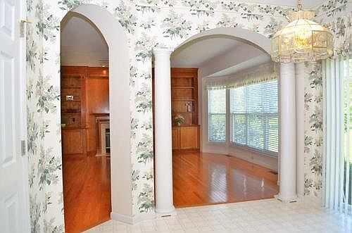 Executive-style 2 story home in Wrenwyck Place conveniently located close to Highways 40/64 and 94/page extension, on a professionally landscaped half acre lot with in-ground sprinkler system. Two-story entry opens to formal living and dining rooms. Family room has bay windows, built-in bookcases on each side of fireplace with archway and columns opening to breakfast room and kitchen. Kitchen has 42 inch cabinets, island and triple panel sliding doors that walk-out to expanded patio. Half bath and main floor laundry complete the main level. Upstairs are the vaulted master suite with luxury bath (oversized soaking tub, dual vanities, separate shower), three secondary bedrooms, and hall bath. Lower level is partially finished with large rec room and half bath. Gleaming hardwood flooring in the entry, living room, dining room, and family room. Home is available for a fast closing.