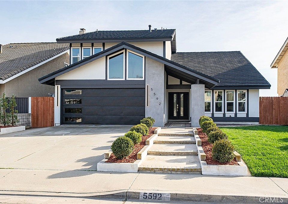 Completely Remodeled Luxury Home in La Palma. Step into a world of elegance with this stunning 4-bedroom, 3-bathroom residence, completely remodeled inside and out. Nestled in a desirable La Palma neighborhood on a 5,980 sq. ft. lot, this 2-story, 2,360 sq. ft. home is a true masterpiece, showcasing luxury in every detail. From the moment you arrive, the modern curb appeal sets the tone for the sophisticated upgrades found throughout. Inside, the open-concept floor plan is designed for both comfort and style, with high-end finishes and impeccable craftsmanship. The heart of the home—the gourmet kitchen—boasts sleek black countertops, rich brown cabinetry, and exquisite gold accents, creating a striking yet warm aesthetic. Black appliances complement the design, while designer lighting enhances the space for both cooking and entertaining. The expansive living and dining areas are bathed in natural light, offering a seamless flow for gatherings. The primary suite is a private retreat with a spa-like bathroom featuring high-end fixtures and elegant finishes. The additional bedrooms are generously sized, perfect for family, guests, or a home office. Step outside to a beautifully redesigned backyard, ideal for relaxation or hosting guests. Every inch of this home has been thoughtfully curated to provide modern luxury with timeless charm. Located in the highly sought-after city of La Palma, this home offers top-rated schools, parks, and easy access to major freeways. Experience the pinnacle of contemporary living—schedule your private tour today!