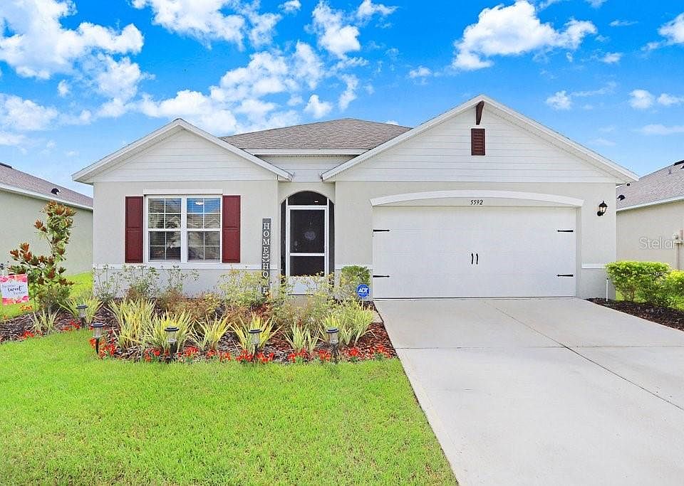 THIS FANTASTIC, WELL-MAINTAINED 4/2 HOME HAS ENDLESS UPGRADES and priced to SELL!!! From a SCREENED-IN FRONT PORCH....to a LARGE, EXTENDED, SCREENED-IN BACK LANAI....to a FENCED-IN YARD with TWO GATES....you'll LOVE all the extra UPGRADES that are ALREADY there for you! This almost new, 2022 home has beautiful ceramic tile flooring everywhere except the bedrooms. The PRIMARY BEDROOM is spacious and overlooks the beautiful backyard through an oversized picture window. The ensuite features DOUBLE SINKS, a WALK-IN SHOWER, a separate toilet room, and TWO WALK-IN CLOSETS that are complete with Closet By Design systems. The larger closet has a SPECIAL BUILT-IN VANITY with a LIGHTED WALL MIRROR! Let's talk about the DREAM KITCHEN and GREAT ROOM! The LARGE BREAKFAST ISLAND seats 3-4 and overlooks the dining and main living areas. The kitchen is adorned with GRANITE countertops, beautiful cabinets with TOP AND UNDER-MOUNTED LIGHTING (remote controlled), 2022 stainless appliances, and a WALK-IN PANTRY! Just off the kitchen is a slider to the ENORMOUS SCREENED-IN LANAI that looks out to the beautiful CONSERVATION - YES, no back neighbors! The JACUZZI HOT TUB WILL STAY, as well as the mounted TV overhead. The hot tub has color-changing lights and a COVER WITH SAFETY LOCKS. At night, you'll love the SOLAR LIGHTS on the fence that can CHANGE COLORS according to what activity you have going on! The outdoor POLYWOOD furniture WILL BE INCLUDED with a full price offer! In the garage, the STORAGE SYSTEM will stay, as well as the wall organization system. There's a keypad for exterior access, and the overhead door opener is MyQ capable and can be controlled via your phone from anywhere. Across from this home's driveway, you'll enjoy NO OTHER DRIVEWAYS! Instead, there's an extra-large open green space between houses. ADDITIONAL UPGRADES you'll love include: Front door has keyless entry pad, SKYBELL DOORBELL, lighted ceiling fans and faux wood blinds in every bedroom, irrigation system entire property, motion light switches in laundry room and garage, plywood flooring in the attic, and wired for security system. The Riverstone community has wide walking trails, a community pool and playground and fitness center, as well as a dog park separated for your big or little fluff balls! Get your appointment today before someone else grabs this AMAZING home!