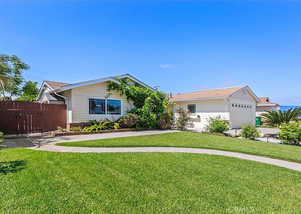 Feel the cool ocean breezes from this charming single level home on the Westside of Westminster. Featuring three large bedrooms and two bathrooms, separate living room, family room, and formal dining, all on a nearly 8000 square foot grassy interior lot. Upgrades include a remodeled open concept kitchen with breakfast bar center island, butler's pantry with extra storage and wine fridge, 2 beautiful bathrooms with modern fixtures and design, a light and airy family room with custom wood accents, cozy brick fireplace, and French doors opening to the expansive well-manicured backyard, complete with a covered patio, outdoor kitchen bar and BBQ, firepit, above ground Spa, and mature Orange and Avocado trees. Home also features central heating and A/C, wood floors in living areas and brand new carpet in all three bedrooms. Located within walking distance to award winning Eastwood Elementary School and fabulous Bolsa Chica Park!