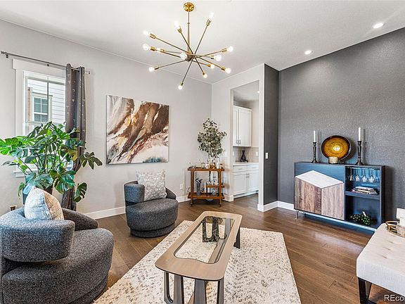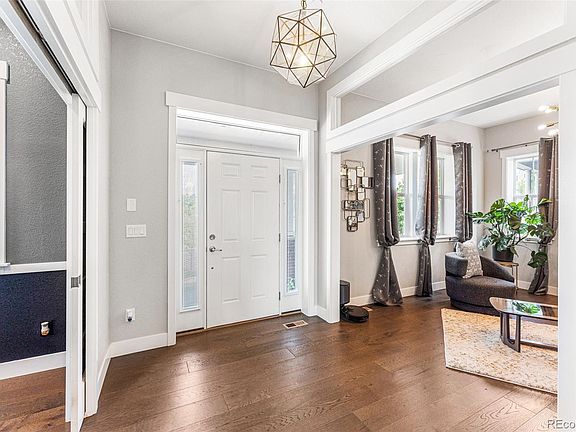 Welcome to this stunning Hyland Village home, offering breathtaking mountain views. Built in 2018, this home seamlessly combines meticulous craftsmanship with modern conveniences tailored to today's lifestyle. Step inside and immerse yourself in a bright and contemporary space, beautifully maintained throughout. The main floor boasts a light-filled study, a versatile formal dining space or sitting room, and an open kitchen/living area with a cozy gas fireplace. The gourmet eat-in kitchen features a double oven, 5-burner gas cooktop, expansive quartz island, and a convenient butler's pantry. Completing the main level is a powder room and a separate laundry room that leads to the attached oversized three-car garage, providing ample storage. The second floor features a built-in library, adding character and charm to the home. Also upstairs are four bedrooms and two full baths, including a primary retreat with a spacious 5-piece en-suite with dual walk-in closets and a luxurious soaking tub. The fully finished basement boasts 9-foot ceilings, offering space for relaxation and entertainment, along with a full guest suite and ample storage. This LEED Certified home is equipped with multiple energy-efficient and health-conscious features, including Tesla solar panels, a tankless water heater, and a full in-home fire suppression system. Outside, enjoy gatherings on your covered front porch, or retreat to the back of the home for privacy and solitude on your relaxing concrete patio in the beautifully landscaped backyard. Situated on a premium lot, this home backs to the pocket park, ensuring a tranquil and serene setting. The home is across the street from the playground and the community pool and is just blocks away from trails. It offers endless opportunities for outdoor activities along with the convenience of nearby shopping and dining. A quick 15-minute commute to both Denver and Boulder makes this an ideal location for both work and play.